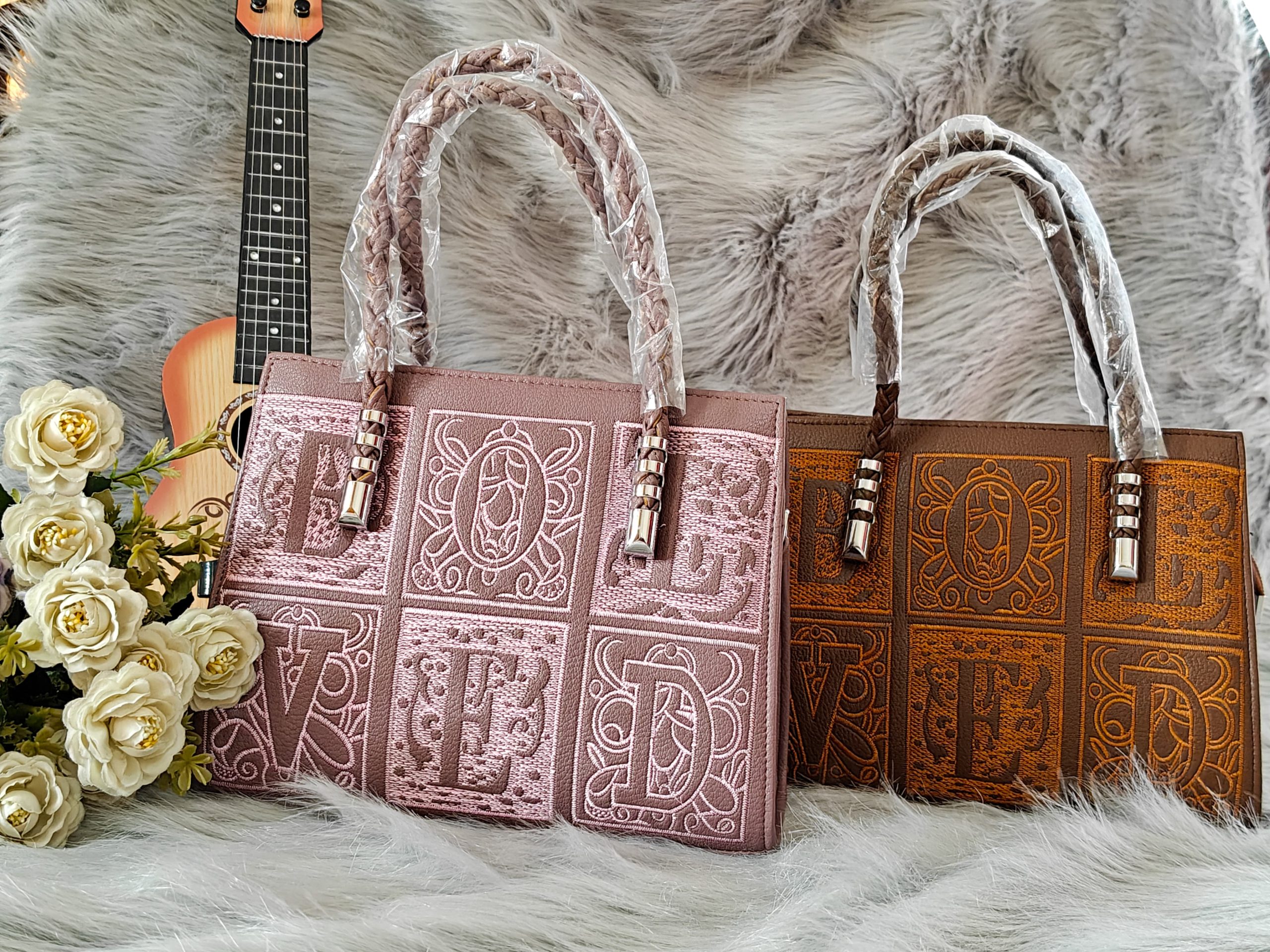 Celebrate the art of detail with the Amara Embroidered Tote. This standout piece features a unique, block-paneled design with ornate “LOVE” and filigree embroidery. With its hand-braided handles and structured silhouette, it is the perfect blend of boho-chic and everyday practicality.